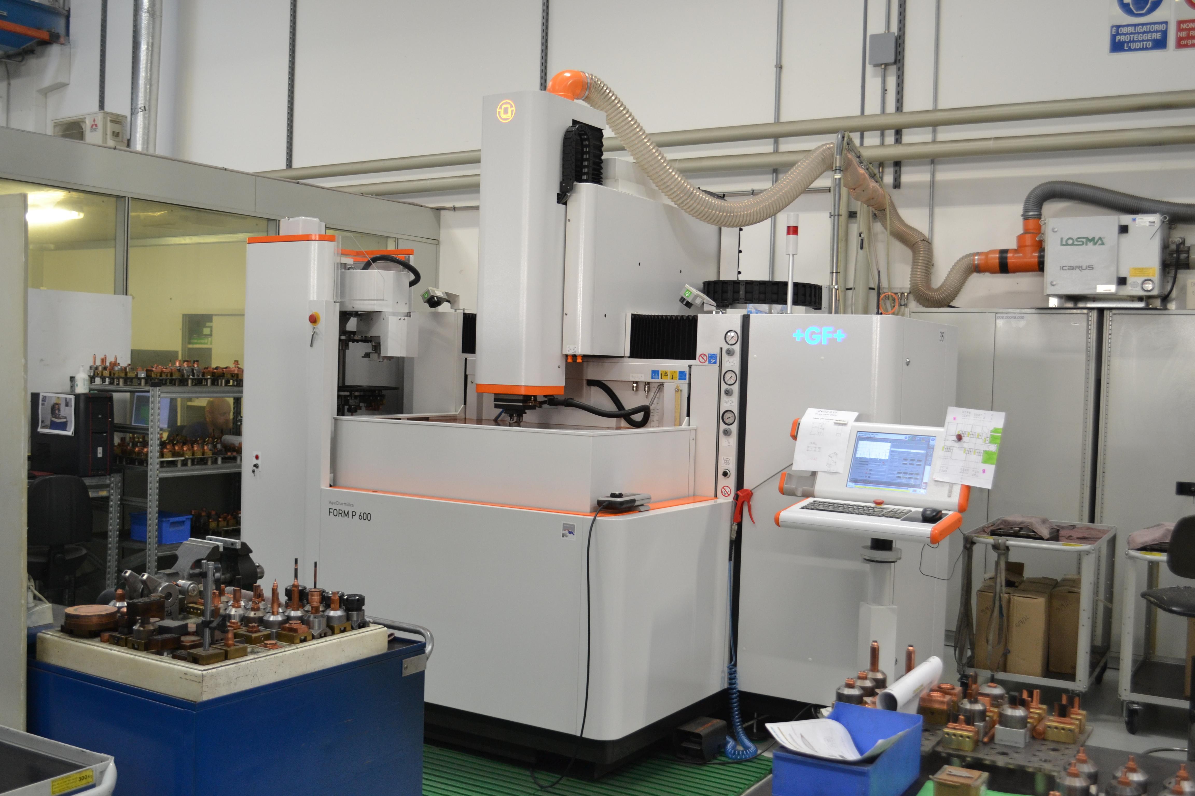 Molto spesso, la costruzione di uno stampo a iniezione richiede anche il ricorso a speciali lenti di ingrandimento perché operiamo con elettrodi e utensili di dimensioni ridottissime.